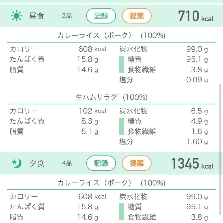 カロリーや塩分を計算してくれるので