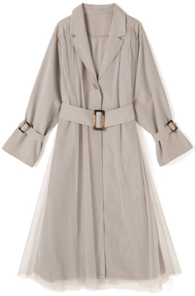 ✓GRL ベルト付きチュールドッキングトレンチコート