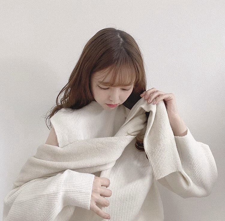 肩にカーディガンを